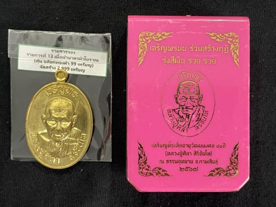 !!!!วัดใจแดงเคาะแรก!!เหรียญเจริญอายุวัฒนมงคล 80 ปี หลวงปู่ศิลา สิริจันโท เจริญพรบน รุ่นสีเงิน รวย รวย เนื้อฝาบาตรผิวโบราณ หมายเลข 1702 พร่อมกล่อง