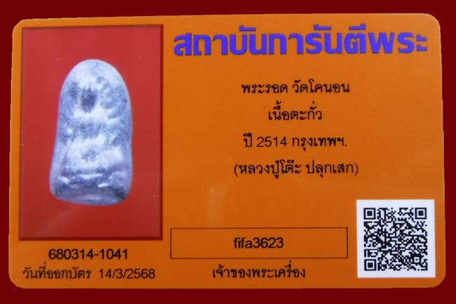 แดงที่เคาะแรก !!! พระรอด เนื้อตะกั่ว วัดโคนอน ปี2514 (หลวงปู่โต๊ะปลุกเสก) + บัตรพระแท้