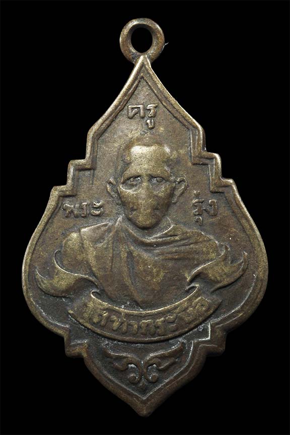 เหรียญหลวงพ่อรุ่ง วัดท่ากระบือ พิมพ์หน้าแก่ หลังยันต์ตรง เนื้อเงิน ปี 2484 สภาพน่ารัก (พร้อมบัตรรับรองของสมาคม)