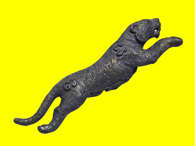 พญาเสือมหายันต์ปืนแตก รุ่นแรก สุดยอด เครื่องรางของวิเศษสำหรับลูกผู้ชายไทย พยัคฆราชแห่งดินแดนอีสาน ที่บรรจงสร้างเป็นรูปเสือเผ่นโจนทะยาน เรียกสูตรลงกำกับด้วยพุทธาคม พุทธามหาเวทตามศาสตร์สายวิชา พญาเสือ ตวัดขีดลากเส้นสายลายยันต์ด้วย มหายันต์ปืนแตก นะวิเศษหัวใจ พญาเสือโคร่ง นะวิเศษหัวใจ พญาราชสีห์ นะวิเศษหัวใจ พระอิติปิโสฯ รัตนมาลา " สีหะนาทัง " นะวิเศษหัวใจ บังปืน หล่อหลอมขึ้นจากโลหะแร่ธาตุวิเศษตามตำราโบราณทุกประการ