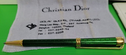 ปากกา Christian Dior (คริสเตียน ดิออร์) ปากกาลูกลื่น มือสอง สีเขียวปีกแมลงทับ สวยมาก ครบชุด