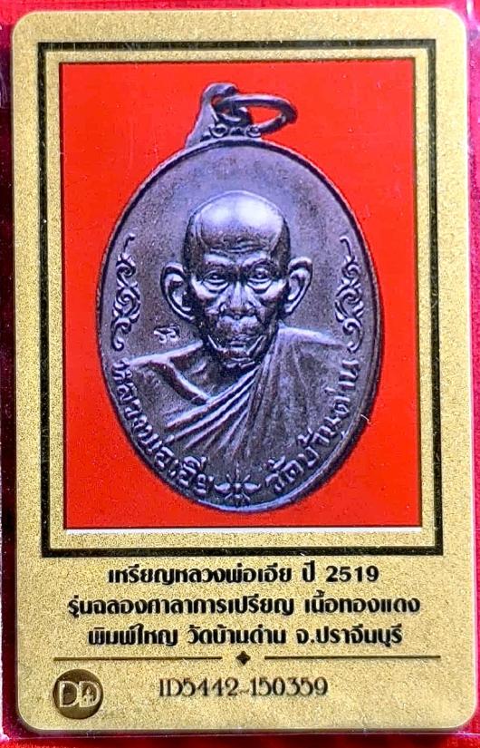 เหรียญหลวงพ่อเอีย วัดบ้านด่าน รุ่นฉลองศาลาการเปรียญ พิมพ์ใหญ่ เนื้อทองแดง ปี 2519 จ.ปราจีนบุรี องค์สวยๆครับ ++พระแท้ดูง่ายๆ++รับประกันตามกฎเวปทุกประการครับ++