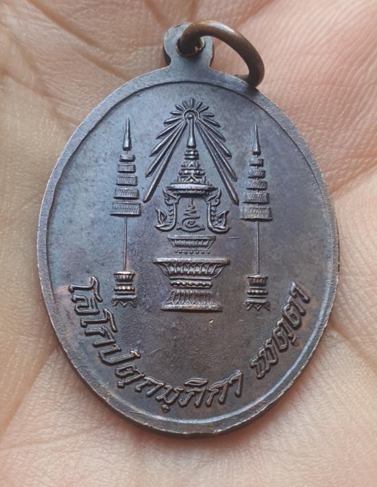 ส่วนด้านหลังรูปฉัตร และด้านใต้มี ภาษาบาลีว่า