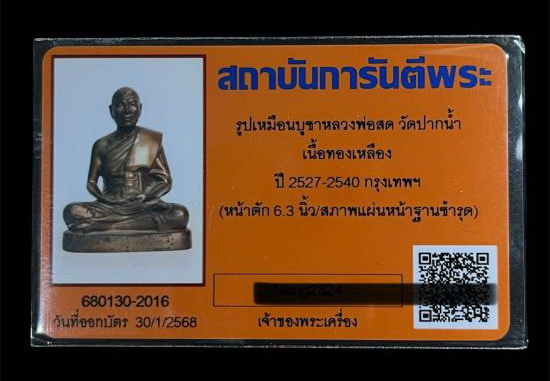 รายละเอียด รูปเหมือนหลวงพ่อสด วัดปากน้ำ เนื้อทองเหลือง ปี 2527-2540 (หน้าตัก 6.3 นิ้ว) +บัตรรับรองครับ