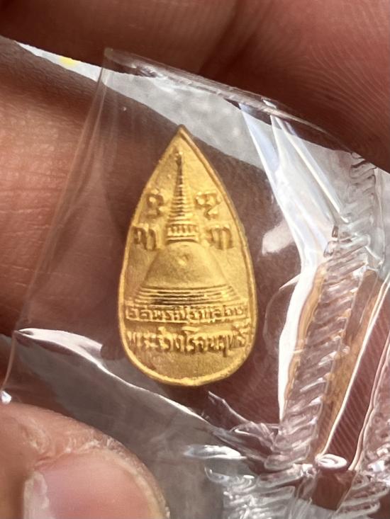 เหรียญหยดน้ำ พระร่วงโรจนฤทธิ์ วัดพระปฐมเจดีย์ เนื้อนวโลหะพ่นทรายทองไมครอน ปี 2524 จ.นครปฐม