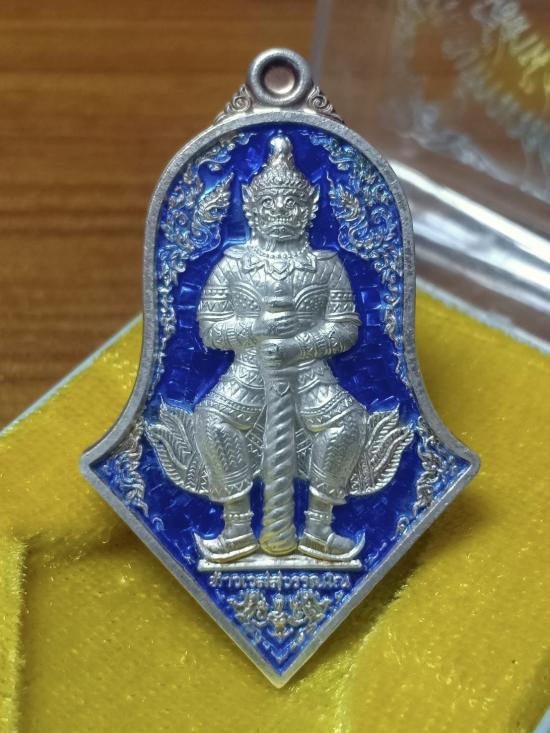 เหรียญท้าวเวสสุวรรณเนื้อเงิน ลงยาสีน้ำเงิน พิมพ์จำปี บุญอีสาน หลวงพ่ออิฏฐ์ วัดจุฬามณี ปี 2563 กล่องเดิมครบ