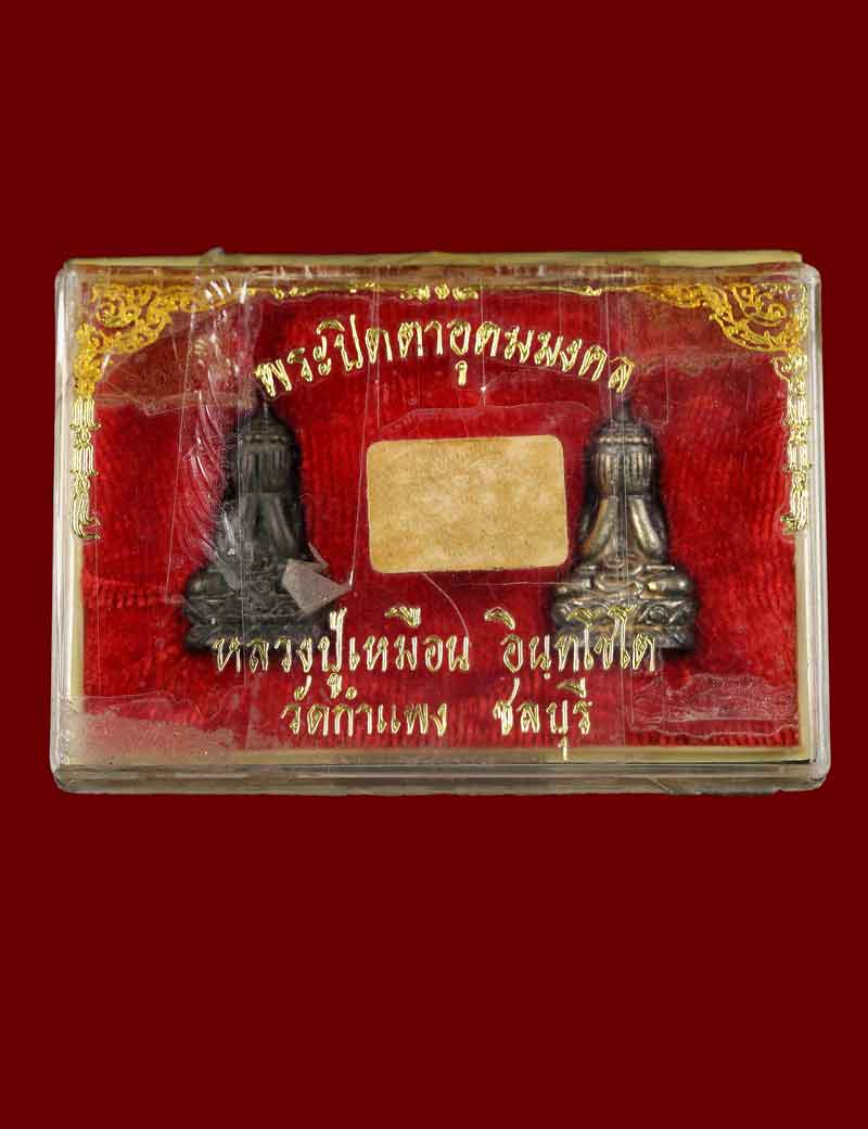 พระปิดตาอุดมมงคล หลวงปู่เหมือน อินทเจดีย์ วัดกำแพง ชลบุรีเงิน+นวะ กล่องเดิมๆ