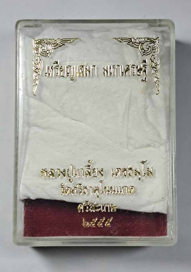 เคาะเดียว เหรียญเสมามหาเศรษฐี หลวงปู่เกลี้ยง เตชธมฺโม วัดโนนแกด จ.ศรีสะเกษ อายุ 105 ปี พ.ศ.2555 เนื้อทองแดง ตอกโค๊ต สภาพสวย พร้อมกล่องเดิม