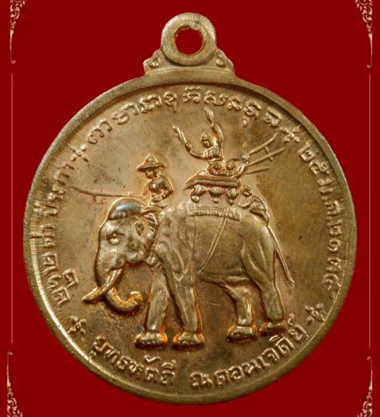 เหรียญสมเด็จพระนเรศวร ยุทธหัตถี จ.สุพรรณบุรี พิมพ์ 3ดาบ เนื้อทองแดงกะไหล่นาก ปี2513