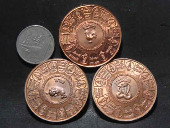 วัดใจเคาะเดียว........150.......เหรียญจตุคามรามเทพ รุ่นจันทรภาณุมหาราช สุวรรณภูมิ เนื้อทองแดงนอก ขนาด 3.2 ซม. หลังปีระกา + ปีขาล + ปี มะเส็ง สวย รวม 3 เหรียญ