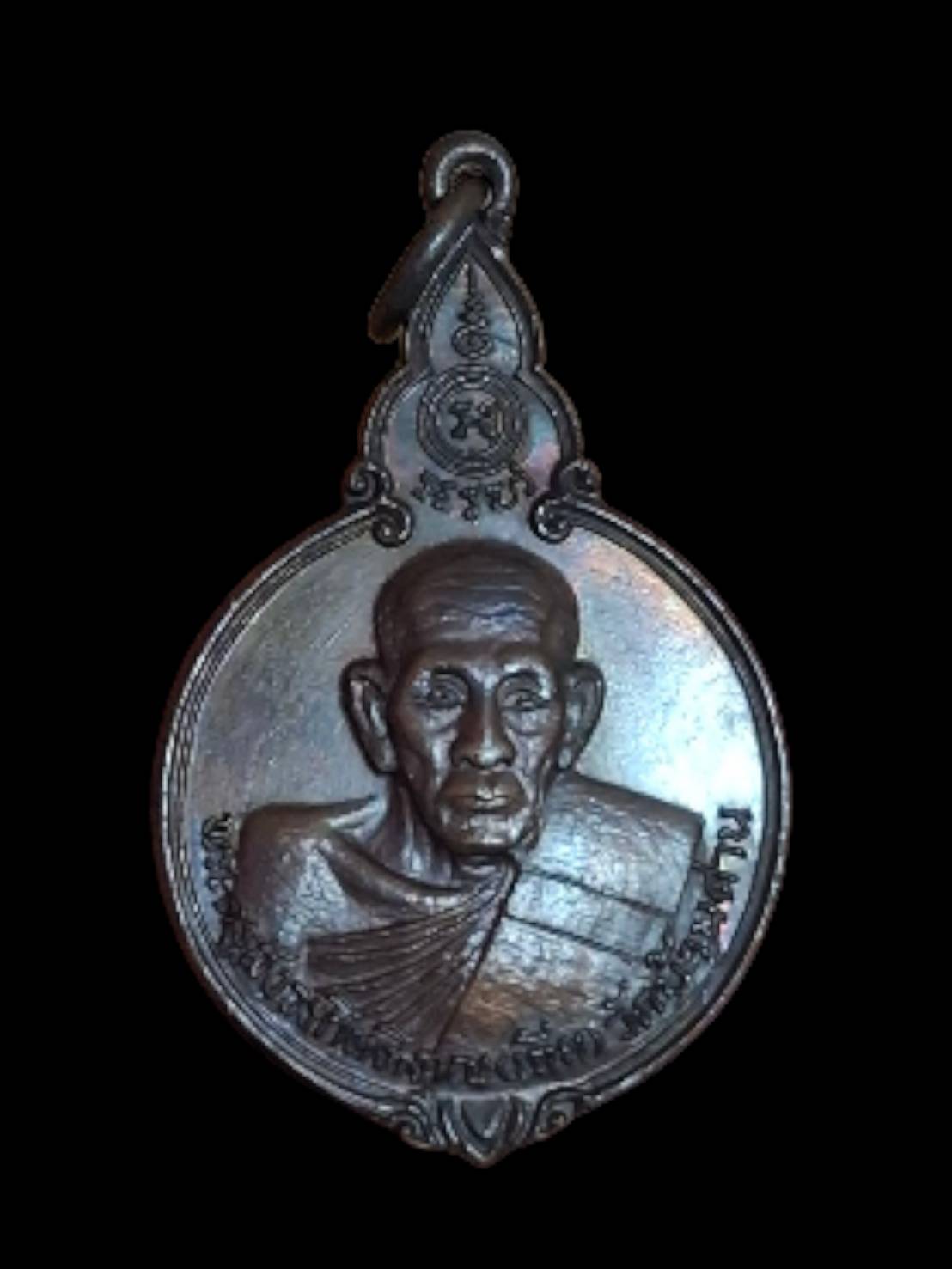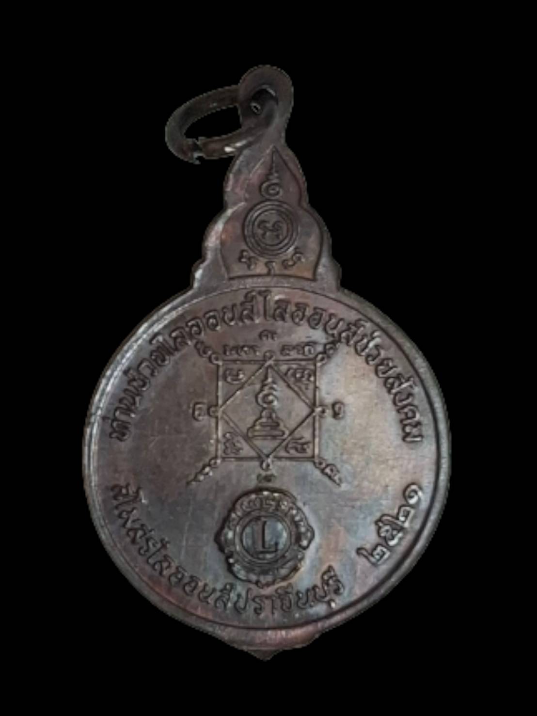 เหรียญหลวงพ่อเอีย วัดบ้านด่าน ปี พ.ศ. 2521 เนื้อทองแดงรมน้ำตาล สโมสรไลออนส์ปราจีนบุรีสร้างถวาย