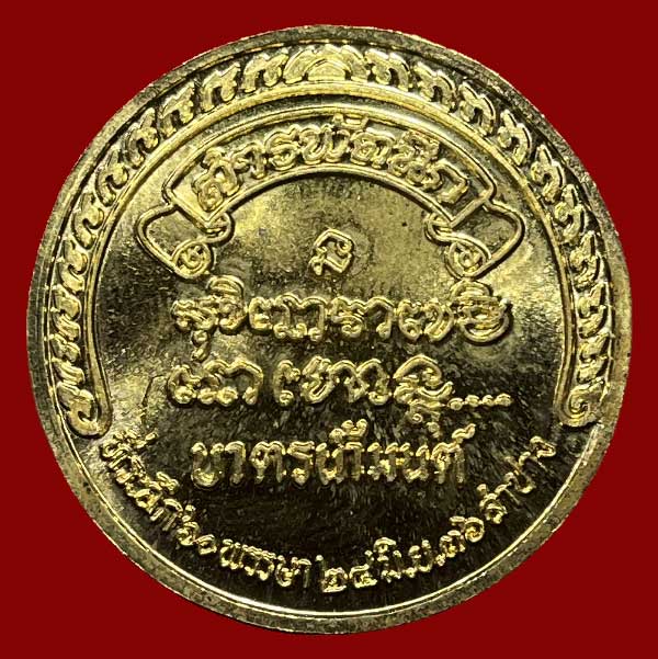 ชื่อพระเครื่อง เหรียญบาตรน้ำมนต์สารพัดนึก หลวงพ่อเกษม เขมโก ปี 2536 เนื้อกะไหล่ทอง ตอกโค๊ตด้านหน้า ... สวย สวย สวย ...