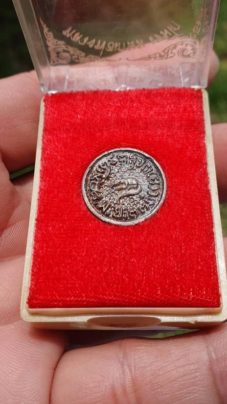 เหรียญล้อแม็ก หลวงพ่อเกษม เขมโก สุสานไตรลักษณ์ หลังหนู พ.ศ.2533 เนื้อเงิน ตอกโค๊ต พร้อมกล่องเดิม