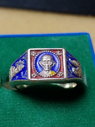 แหวนหลวงพ่อรวยรุ่น รวย รวย เฮงเฮง (เนื้อเงินลงยา)