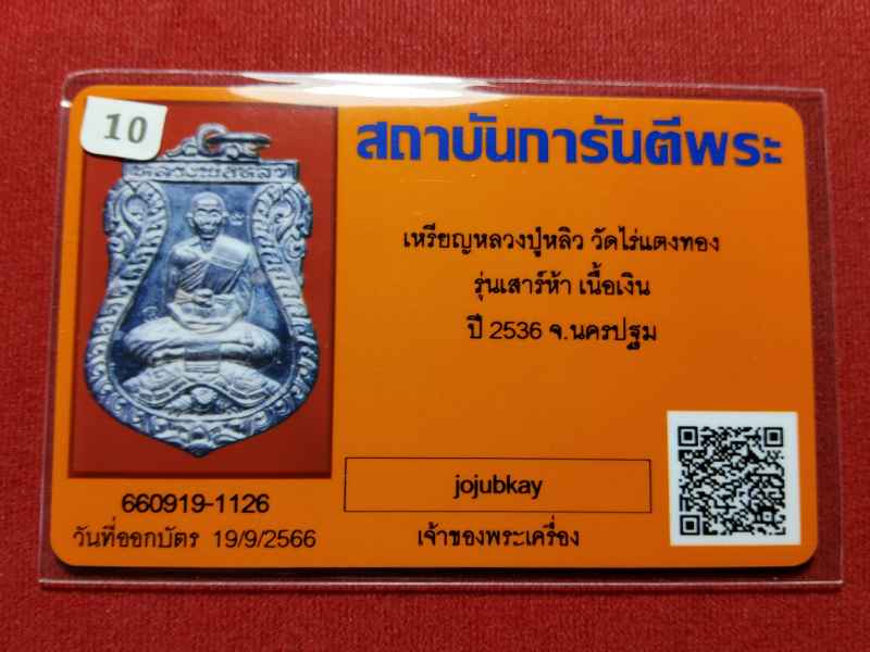 เหรียญหลวงปู่หลิว วัดไร่แตงทอง รุ่นเสาร์ห้า ปี2536 จ.นครปฐม เนื้อเงิน