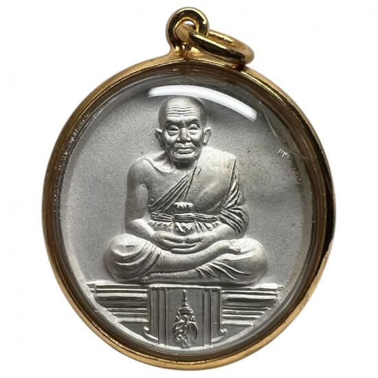 เหรียญหลวงปู่ทวด วัดห้วยมงคล หลังพระนามาภิไธย สก. เนื้อเงินพ่นทราย ปี 2547 ตอกโค๊ต |