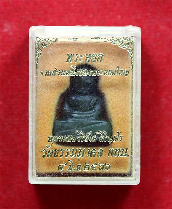 >> พระหยกแกะมือ " หลวงพ่อวิริยังค์ สิรินธโร " วัดธรรมมงคล ปี 2536 เนื้อหยกแท้ แกะจากส่วนหนึ่งของพระหยกองค์ใหญ่ พระอาจารย์หลวงพ่อวิริยังค์ เป็นพระสายกรรมฐาน ลูกศิษย์ท่านพระอาจารย์มั่น ภูริทัตโต หลวงพ่อได้นำก้อนหยกก้อนใหญ่แท้ๆจากประเทศแคนาดามาแกะเป็นรูปพระพุทธรูปหยกแกะที่ใหญ่ที่สุดในโลก ประดิษฐานอยู่ที่วัดธรรมมงคล สุขุมวิท 101 เมื่อแกะเป็นองค์พระพุทธรูปองค์ใหญ่สำเร็จแล้ว ยังมีชิ้นส่วนของหยกที่แกะเหลือ หลวงพ่อได้ให้ช่างนำมาแกะด้วยมือทุกองค์(ดังนั้นทุกองค์จะไม่เหมือนกัน) เป็นพระพิมพ์ต่างๆหลายๆพิมพ์ อาทิเช่น พิมพ์พระพุทธ พิมพ์สมเด็จ พิมพ์นางพญา พิมพ์พระสังกัจจายน์ พิมพ์เจ้าแม่กวนอิม ฯลฯ...เพื่อให้เป็นที่ระลึกถึงคุณความดีของพระพุทธเจ้าและพระปัจเจกพุทธเจ้า ทั้งหลาย วัตถุมงคลของ พระธรรมมงคลญาณ หลวงพ่อวิริยังค์ สิรินธโร สุดยอดเรื่องประสบการณ์ ลูกศิษย์ลูกหา ต่างรู้กันดี และตามเก็บของแบบเงียบ ๆ เพราะวัตถุมงคลของท่านแต่ละรุ่นสร้างไว้น้อย สำหรับพระหยกก็เช่นกัน เศษที่เหลือจากพระองค์ใหญ่แกะได้เท่าไรก็เท่านั้น จึงเป็นของที่มีคุณค่าและหายากมาก เพราะมีจำนวนน้อย อีกประการหนึ่งด้วยพลังของหยกที่มีอยู่ในตัวเองและได้หลวงพ่อวิริยังค์ปลุก เสกด้วยแล้ว จึงเป็นวัตถุมงคลที่ลุกศิษย์ลุกหา ต่างอยากมีไว้ในครอบครอง ซึ่งแต่ละองค์แกะไม่เหมือนกัน และเป็นเอกลักษณ์เฉพาะตัวท่านที่หาผู้ใดมาเปรียบไม่ได้