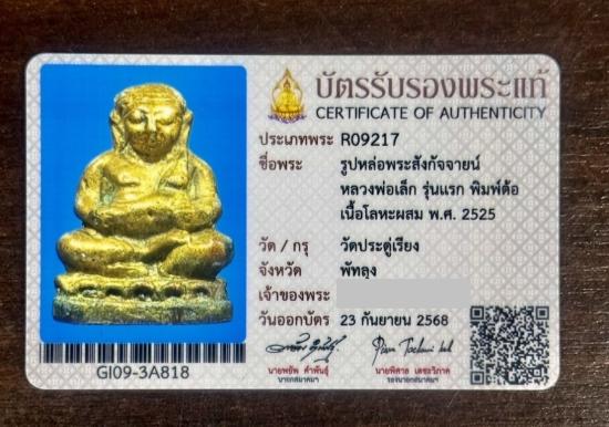 พร้อมเลี่ยมทองคำอย่างดีและบัตรสมาคม รับประกันแท้และตามกฎ(ออกบัตรเองลด 1,000 บาท)ครับ