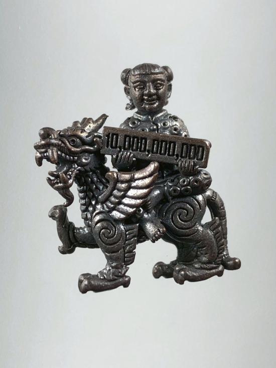 วัดใจ 150... กุมารเจ้าสัวมหาสมบัติ ขี่กิเลน เนื้อชนวนโลหะ หลวงพ่อปิ่น วัดหนองเกษร จ.ราชบุรี ปี2552 |