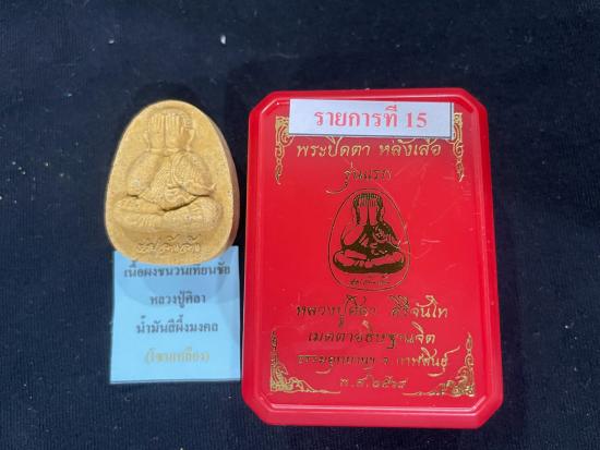 พระปิดตาหลังเสือรุ่นแรก หลวงปู่ศิลา สิริจันโท เนื้อผงชนวนเทียนชัย หลวงปู่ศิลา น้ำมันสีผึ้งมงคล โซลเหลือง หมายเลข 157 พร้อมกล่อง |