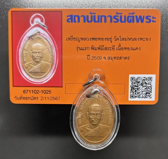 เหรียญหลวงพ่อทองอยู่ วัดหนองพะอง รุ่นแรก ปี 2509 บล็อกหน้าธิการี หลังธิการ เนื้อทองแดง ผิวไฟ พร้อมบัตรรับรอง รับประกันตามกฎครับ |