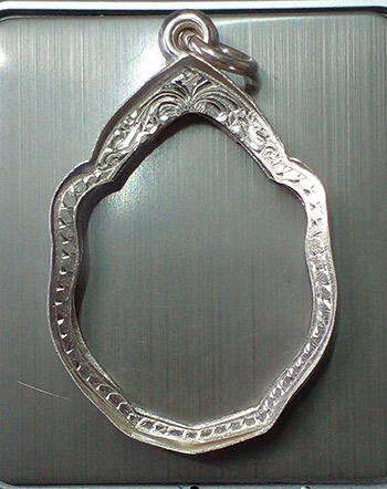 <<กรอบเงินแท้95%>>มือหนึ่ง ยกซุ้มหัวสิงห์ ใส่เหรียญมังกรคู่หลวงปู่หมุน/หลวงพ่อเอีย งานมือช่างทองแกะลายลึกๆสวยๆ หนัก6.67g