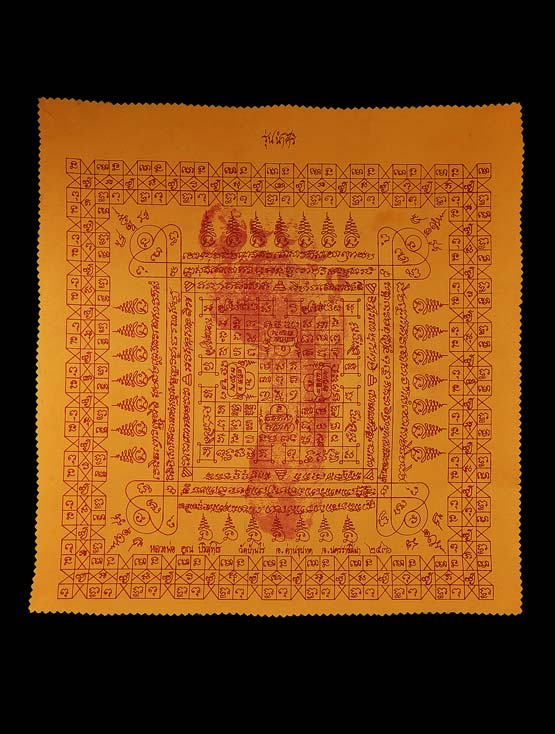 ผ้ายันต์รอยเท้าสกรีน ( สีส้ม 13.5 x 1 3 นิ้ว ) รุ่น นำศิริ พ.ศ.2536 ** 1 **