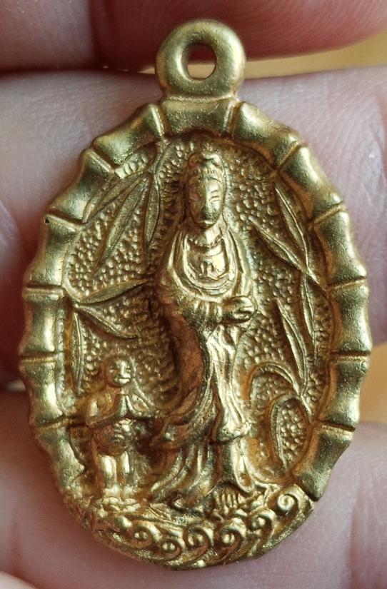 เหรียญเจ้าแม่กวนอิม วัดซับไม้แดง ปี 2518 เนื้อทองเหลือง สภาพเดิมไม่มีการล้างผิวใดๆ