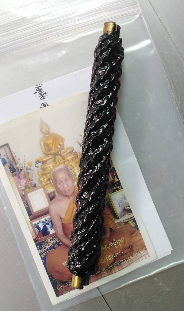 ..ตะกรุดแฝดคู่ชีวิต หลวงปู่หุน วัดบางผึ้ง จ.ฉะเชิงเทรา ถักด้วยเชือกราวสะพาน ความยาว 5 นิ้ว จำนวนสร้าง 1,500 ดอก มีโค๊ดกำกับทุกดอก..หายาก