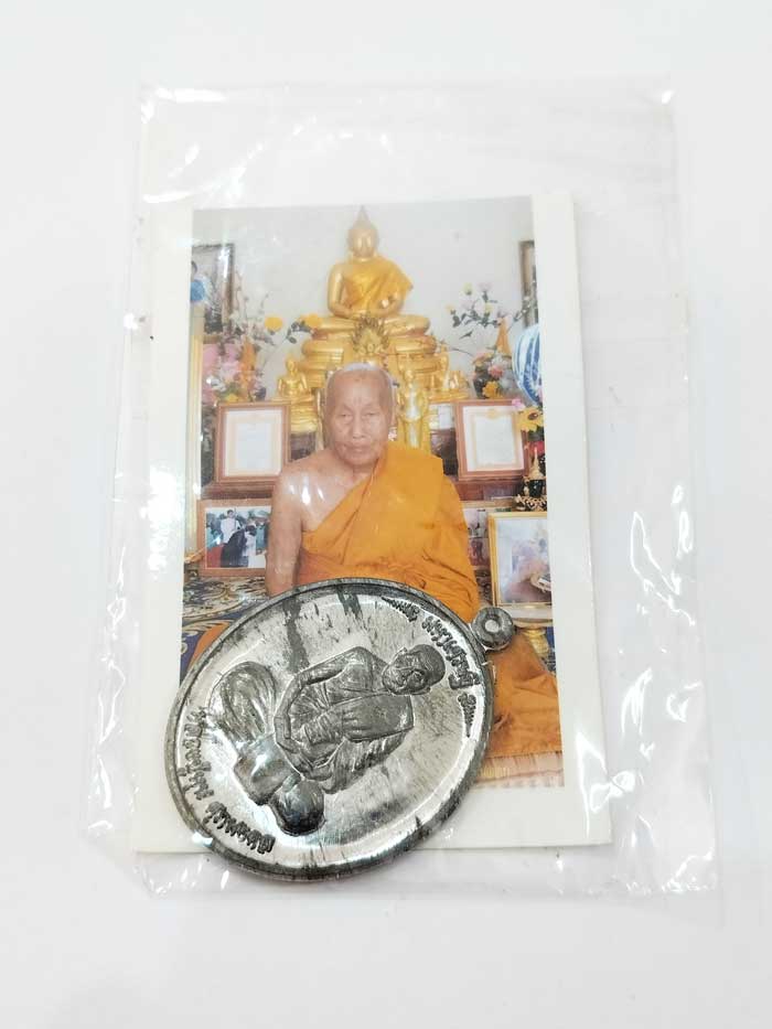 เหรียญรุ่น 1 มหาเศรษฐี หลวงปู่หุน วัดบางผึ้ง จ.ฉะเชิงเทรา เนื้อตะกั่ว สร้าง 1999 เหรียญ ผิวปรอทสวย ซองเดิม