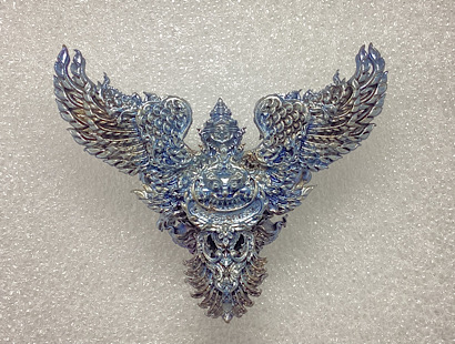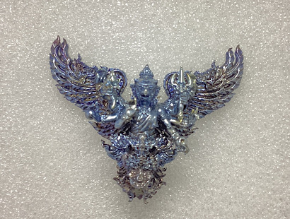 พญาครุฑมังรายศาสตร์ เศรษฐีอนันตทรัพย์ พระอาจารย์วิรุต วัดสันมะเหม้า จ.เชียงราย เนื้อชนวนกำเนิดเศรษฐี (สีปีกแมงทับ) สูง 4 ซ.ม. พิมพ์ใหญ่ กล่องเดิม