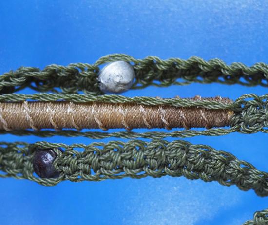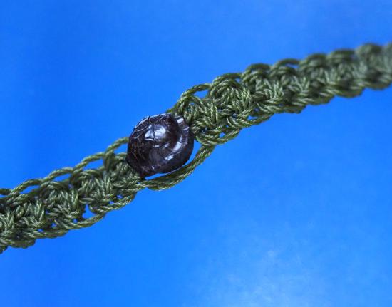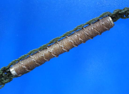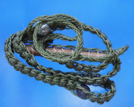 ตะกรุดสายถักเชือกเขียว เนื้อฝาบาตรถัดเชือก ลูกคั่นเนื้อตะกั่ว ,เนื้อครั่งพุทรา สภาพสวย ยาว 36 นิ้ว อายุกว่า 30 ปี เคาะแรก