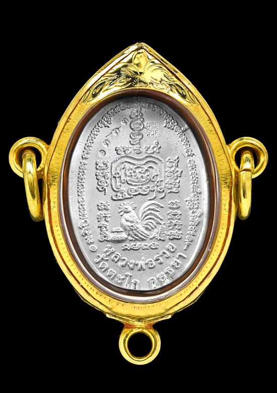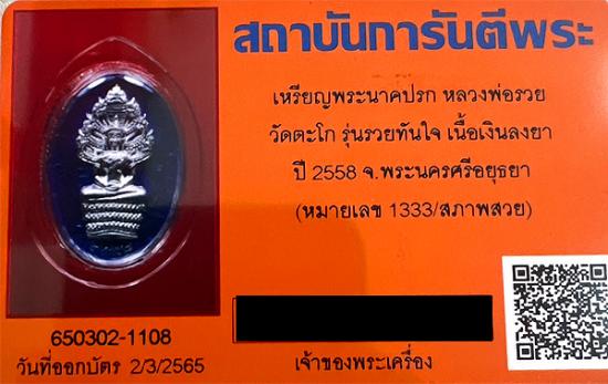 (((บัตรสภาพสวย))) หลวงพ่อรวย วัดตะโก รุ่น ปรกรวยทันใจ ปี 58 เนื้อเงินลงยาน้ำเงิน No. 1333 พระสวย เลี่ยมทอง3ห่วง