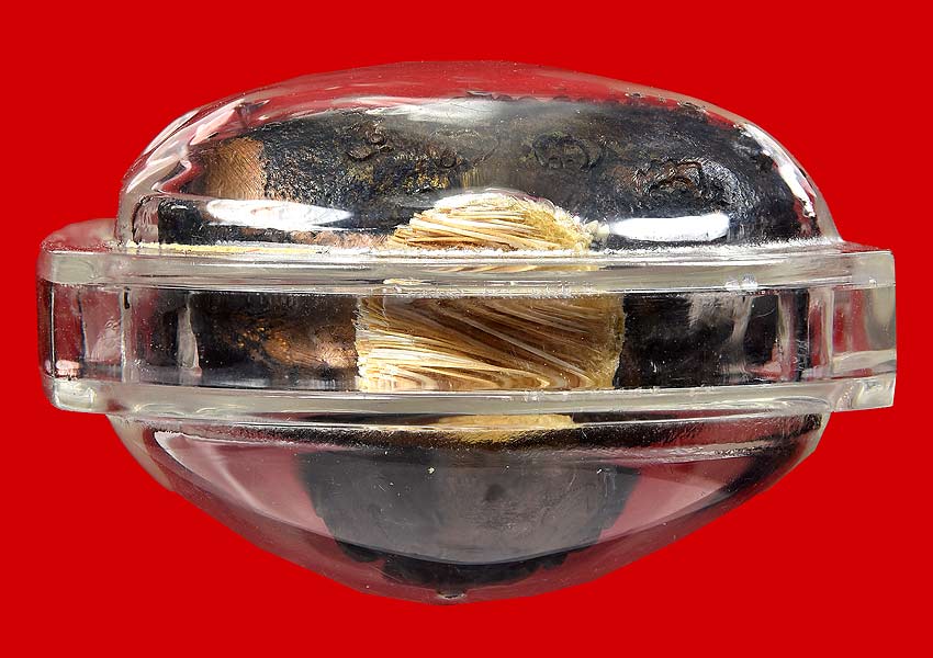 รูปหล่อโบราณ หลวงปู่กาหลง รุ่นแรก ปี 2549 มีโค๊ด และ เลข No.447 เนื้อนวโลหะขอมโบราณพันปี รุ่น ครอบเศียรพระลักษมณ์2549 "ใต้ฐานอุดผงปถมัง ปิดทับด้วยหนังเสือ ฝังเกศา จารยันต์ด้วยมือทั้งองค์ จำนวนสร้าง 4,999 องค์