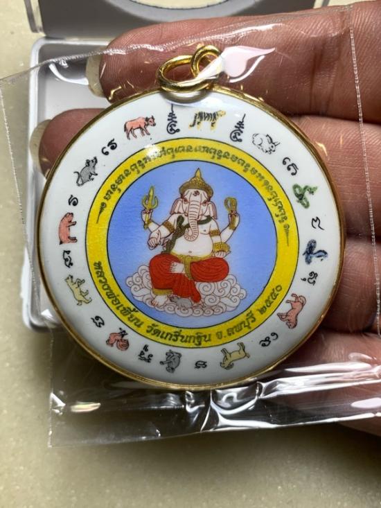 ล๊อคเก็ตฉากทอง หลวงพ่อเพี้ยน วัดเกริ่นกฐิน จ ลพบุรี หลังพระพิฆเนศ ปี 2550 พิมพ์ใหญ่ พร้อมกล่อง เคาะเดียวครับ 4 องค์(จององค์ละ 1500)