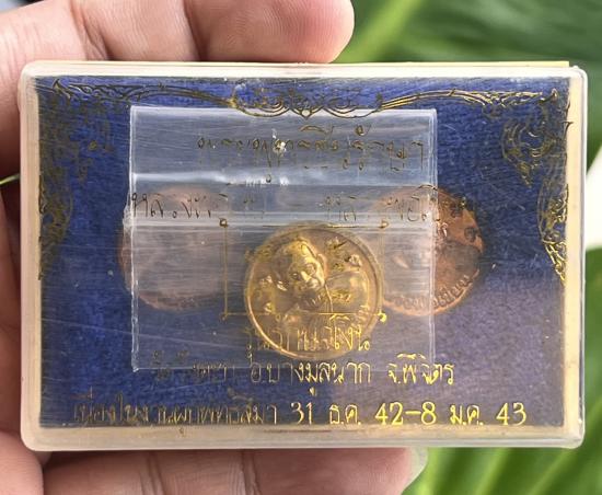 ชุดกล่องเหรียญพระพุทธชินรักษา หลวงพ่อเงิน-หลวงพ่อเขียน รุ่นรักษาเงิน วัดตะกู พิจิตร ปี2543 กล่องเดิม