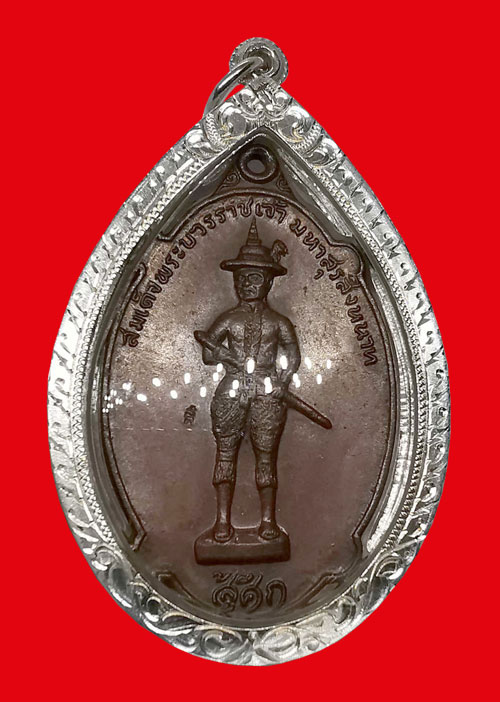 เหรียญสมเด็จพระบวรราชเจ้า มหาสุรสิงหนาท ค่ายมหาสุรสิงหนาทสร้าง รุ่นสู้ศึก เนื้อทองแดง ปี2521 จ.ระยอง + เลี่ยมเงิน