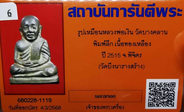 รูปเหมือนหลวงพ่อเงิน วัดบางคลาน พิมพ์ลึก เนื้อทองเหลือง ปี2515 จ.พิจิตร (วัดบึงนารางสร้าง ) + บัตร G-pra สภาพเดิมค่ะ