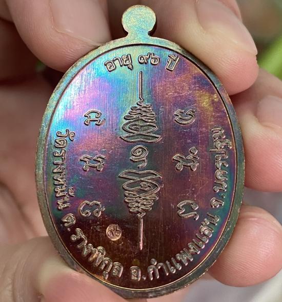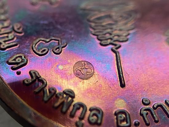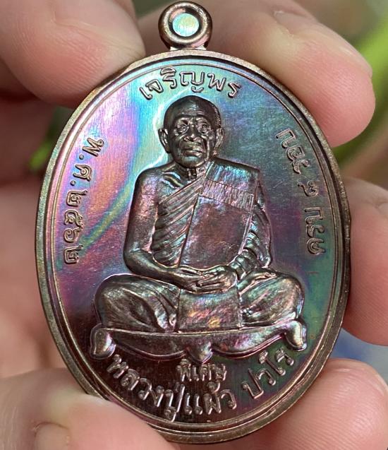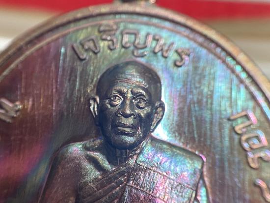 หลวงปู่แผ้ว วัดรางหมัน เหรียญเจริญพรบน ๘ รอบ เนื้อทองเเดงผิวรุ้ง
