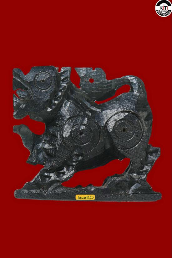 สิงห์คอไก่ยกขาตะปบทรัพย์ (ไม้งิ้วดำ)มีจารหัวใจราชสีห์(สิงหะนาทัง)ขนาด2.5 เซนหลวงพ่อหอม วัดชากหมาก