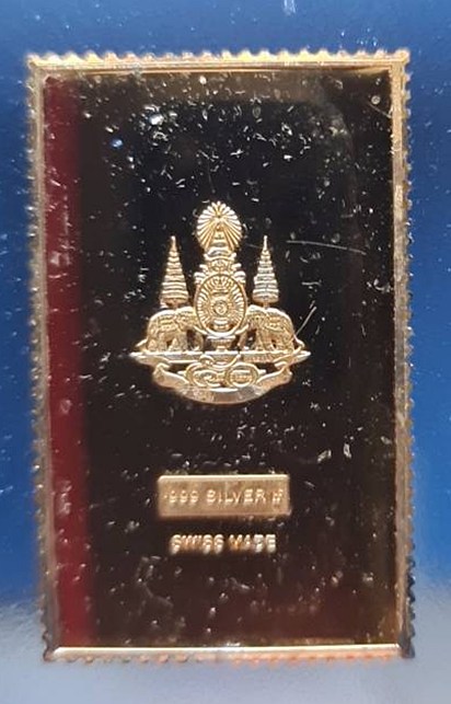 เหรียญเงินบริสุทธิ์ 999.9 ร.7 ชุบทองคำสวิส หนา 2.2 มิล แกะสลักภาพด้วยมือ ผลิตที่ประเทศสวิตเซอร์แลนด์ น้ำหนักประมาณ 30.40 กรัม เหรียญผ่านการใช้มาดังภาพ รับประกันแท้เป็นโลหะเป็นเงินบริสุทธิ์ 99.99 สาม |