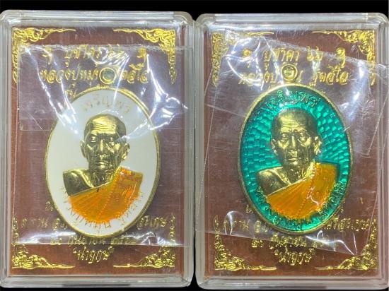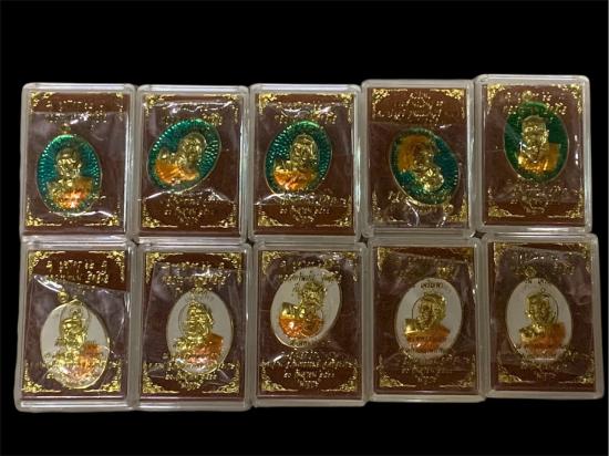 เหรียญรูปไข่ บูชาครู62 หลวงปู่หมุน ฐิตสีโล รุ่นเจริญพร ศรีสะเกษ เนื้อกะไหล่ทองลงยา (จำนวน10องค์)
