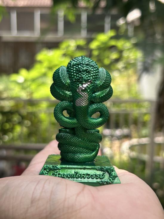 พระปิดตาพังพระกาฬ ขนาดตั้งหน้ารถ หลวงพ่อโชติ วัดพุทไธศวรรย์ สีเขียวเหนี่ยวทรัพย์