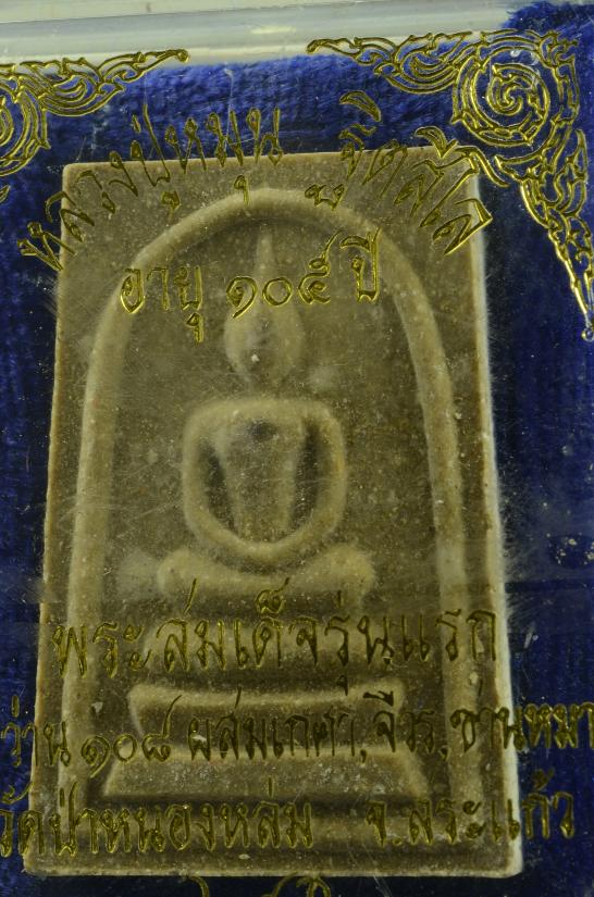 พระสมเด็จรุ่นแรก หลวงปู่หมุน ฐิตสีโล พิธีเจริญลาภ ปี 2542 หลังปั๊มยันต์แดง เนื้อว่านน108 ผสมเกศา จีวร ชานหมาก พร้อมกล่องเดิม