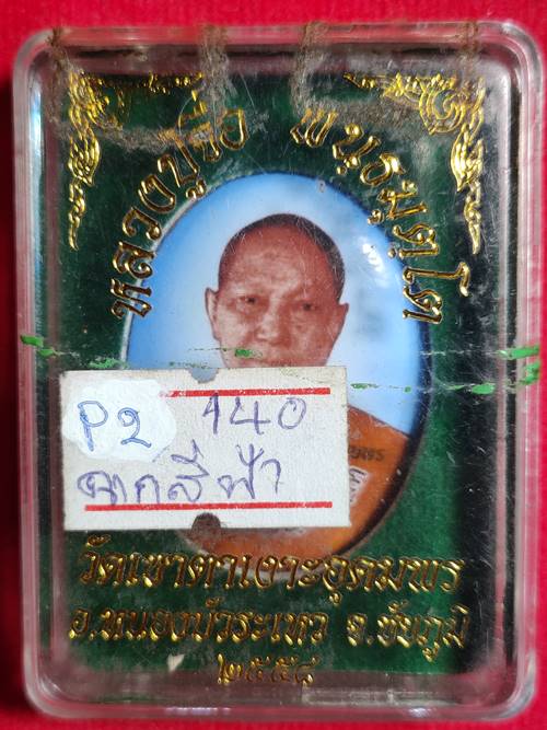 ล็อคเก็ตหลวงปู่จื่อ พันธมุตโต รุ่น เจริญพรสังฆฏิ ออกวัดเขาตาเงาะอุดมพร จ.ชัยภูมิ ปี 58 ฉากสีฟ้า หมายเลข 140 สภาพสวย เคาะเดียวแดง