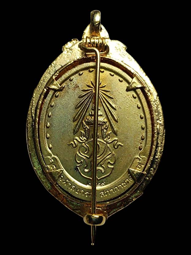 เข็มกลัดเหรียญสมเด็จพระญาณสังวร วัดบวรนิเวศวิหาร ปี 2529 นำเหรียญมาทำล้อมโครงก เพื่อแจกเป็นที่ระลึกกฐินสภากาชาดไทย ณ.วัดเวฬุวัน จ.หนองคาย แจกให้แก่ คณะที่จัดงาน, คณะสำนักสงฆ์วัดเวฬุวัน, คณะกรรมการกฐิน