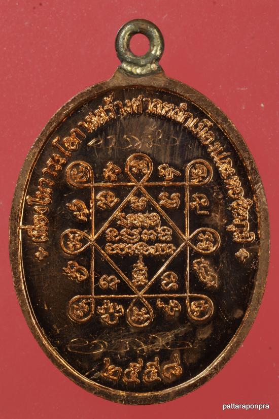 เหรียญหลวงพ่อทอง รุ่นประวัติศาสตร์ไตรภาคี ปี 2558 เนื้อทองแดง มีจาร โค๊ต๙ กรรมการ หมายเลข 72 |