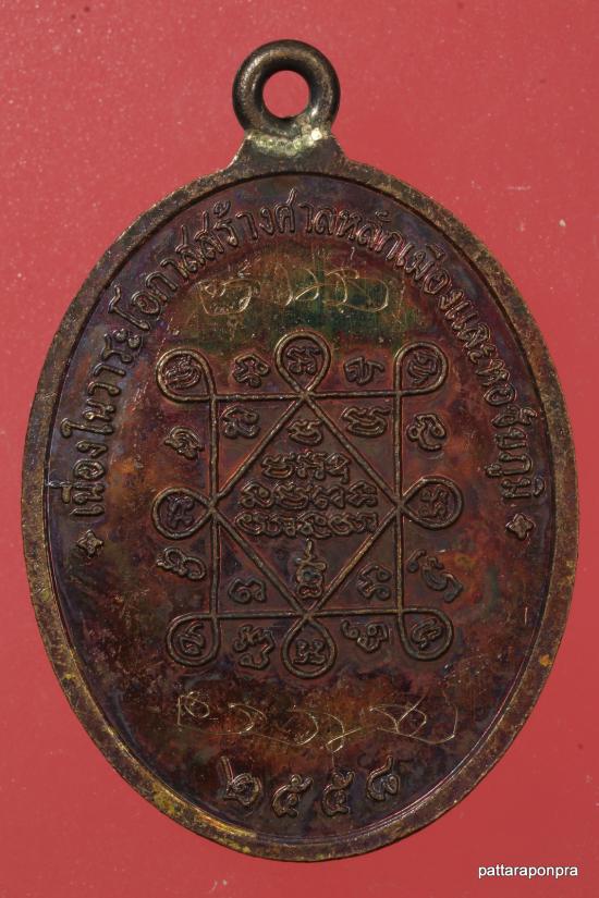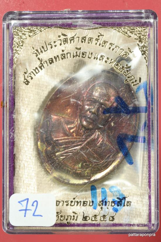 เหรียญหลวงพ่อทอง รุ่นประวัติศาสตร์ไตรภาคี ปี 2558 เนื้อทองแดงมันปู มีจาร โค๊ต๙ กรรมการ หมายเลข 72 |