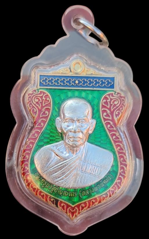 เหรียญมหาสิทธิโชค เนื้อกระไหล่ทองลงยาเขียวหน้ากากเงิน หลวงพ่อพัฒน์ วัดห้วยด้วน โค๊ตเลข๒๐๔ |
