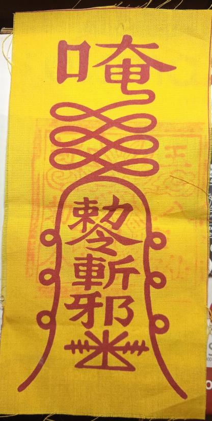 ปิด 100 บาท เหรียญพระสังกัจจายน์จีน + ผ้ายันต์จีน ไม่ทราบที่